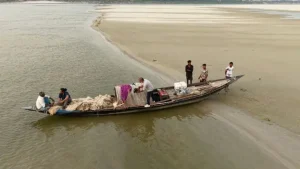 শুষ্ক মৌসুমে পদ্মার বিস্তীর্ণ এলাকাজুড়ে দেখা যায় ধু ধু বালুচর।