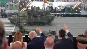 ওয়াশিংটনে আয়োজিত সামরিক প্যারেডে হাজারো সেনাসদস্য, ট্যাংক, সাঁজোয়া যান এবং ব্যান্ড দল অংশ নেয়। প্রেসিডেন্ট ট্রাম্প দাঁড়িয়ে থেকে কুচকাওয়াজ প্রত্যক্ষ করেন এবং স্যালুট জানান।