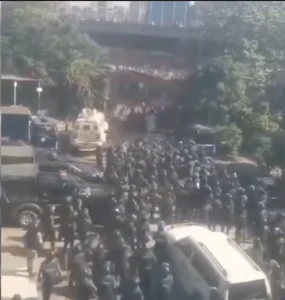 চৌঠা অগাস্টের আরেকটি ভিডিওতে থানা প্রঙ্গণ থেকে পুলিশের বের হওয়ার ঠিক আগ মুহূর্তের দৃশ্য দেখা যাচ্ছে।