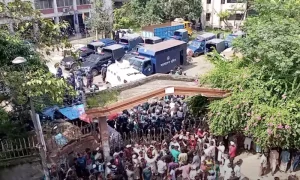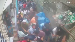 থানার উল্টো দিকে অবস্থিত একটি ভবনের সিসিটিভি ফুটেজে দেখা যাচ্ছে, পুলিশ গুলি চালানো শুরু করার পর প্রাণ বাঁচাতে গলির ভেতর দিয়ে ছুটে পালাচ্ছেন বিক্ষোভকারীরা।