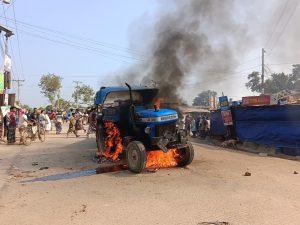 শিক্ষার্থী মৃত্যুর ঘটনায় স্থানীয় বিক্ষুব্ধ জনতা ট্রাকে আগুন ধরিয়ে দিয়ে ট্রাক্টরটি পুড়িয়ে দেয়।