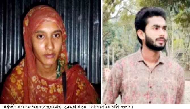 দুদিন ধরে পাবনার ঈশ্বরদীতে প্রেমিকের বাড়িতে অবস্থান নিয়ে বিয়ের দাবিতে অনশনে বসেছেন মোছা. সুমাইয়া খাতুন (১৯) নামে এক নারী। এঘটনায়