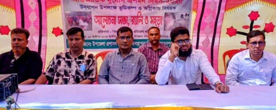 নওগাঁর মহাদেবপুরে উপজেলা প্রকল্প বাস্তবায়ন কর্মকর্তার আয়োজনে আন্তর্জাতিক দূর্যোগ প্রশমন দিবস পালনের অনুষ্ঠানে কর্মকর্তাদের সাথে মঞ্চে কয়েকজন বিতর্কীত ব্যক্তির উপস্থিতি