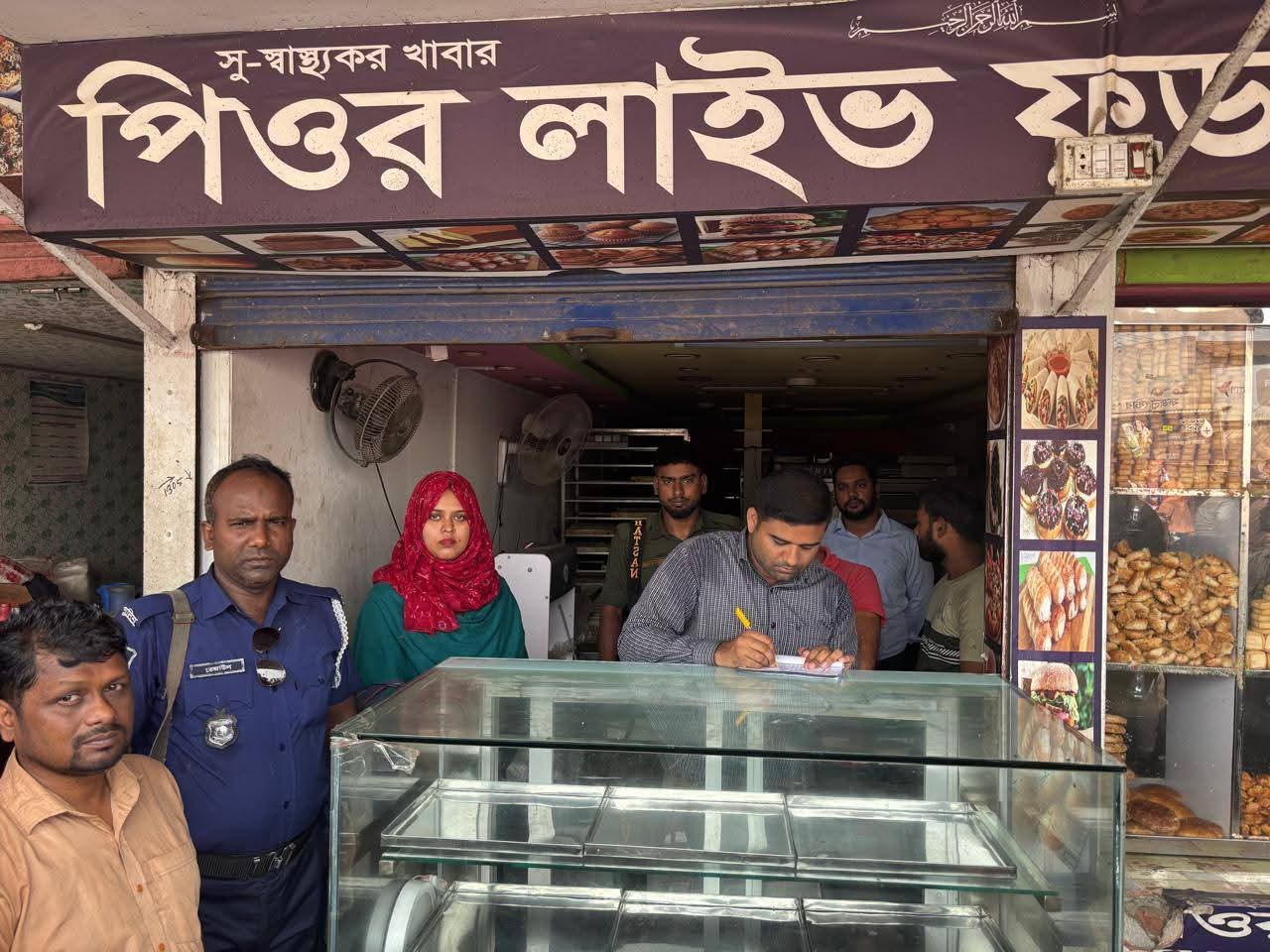 সাঁথিয়ায় পিওর লাইভ ফুড বেকারি এন্ড পেস্ট্রি দোকানে ভ্রাম্যমান আদালতের জরিমানা