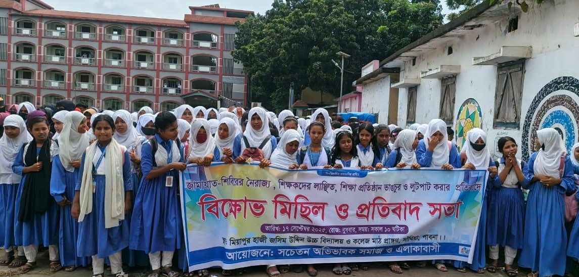 পাবনা সাঁথিয়ায় শিবিরের নৈরাজ্য শিক্ষকদের সাঁথিয়ায় শিবিরের বিরুদ্ধে শিক্ষকদের লাঞ্চিত ও শিক্ষা প্রতিষ্ঠান ভাংচুরের প্রতিবাদে বিক্ষোভ মিছিল ও প্রতিবাদ সমাবেশ