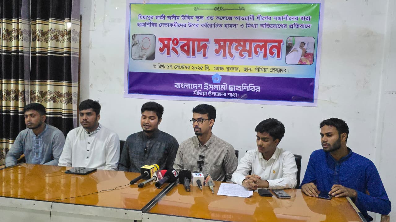 সাঁথিয়ায় মিয়াপুর স্কুল এন্ড কলেজে হামলা ও ভাংচুরের ঘটনায় ছাত্র শিবিরের সংবাদ সম্মেলন