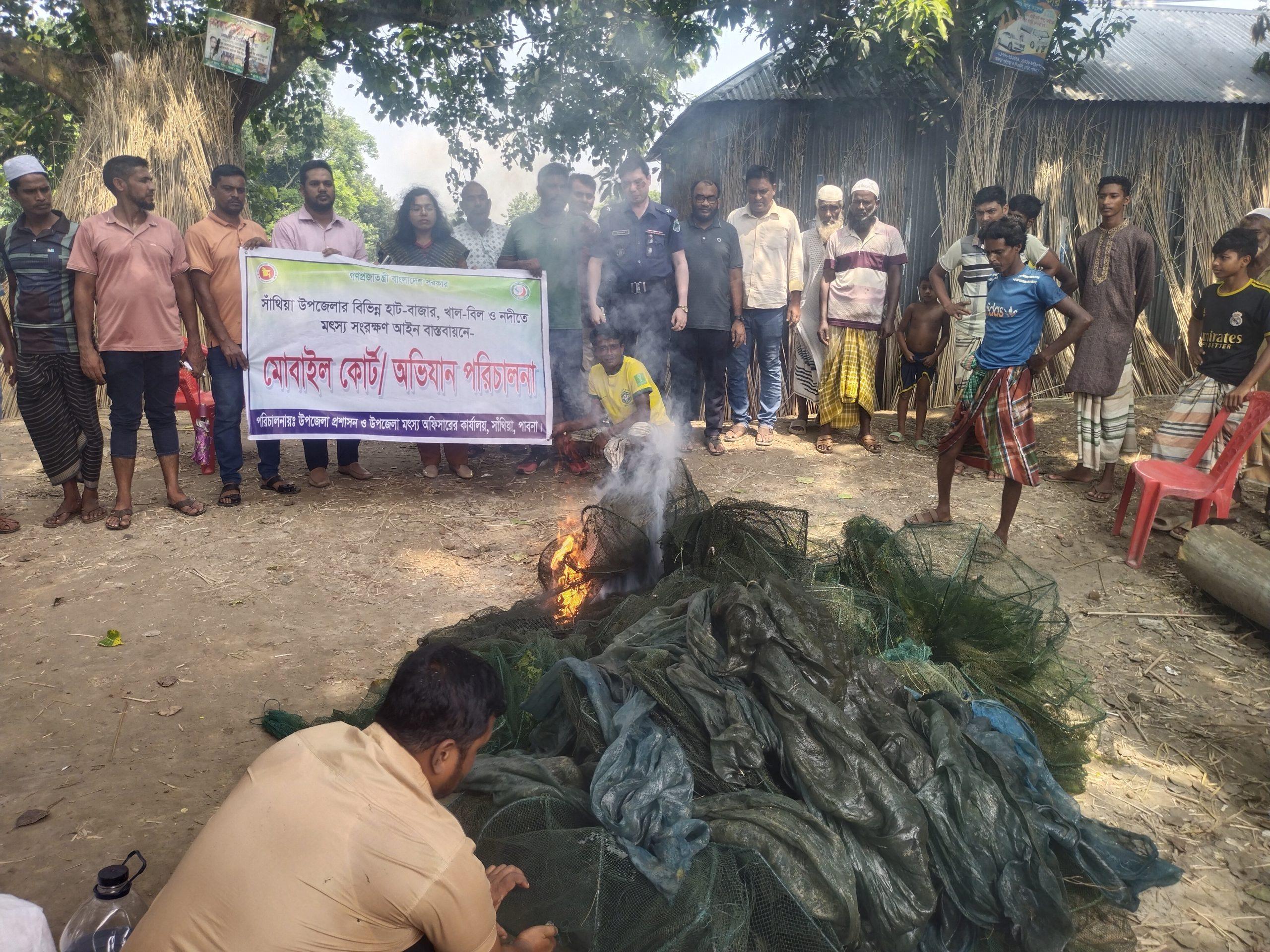 পাবনার সাঁথিয়ার কাটিয়াদহ, জিয়েলগাড়ী,আফড়া আরাজি বিলে চায়না দোয়ারী জালের উচ্ছেদ অভিযান পরিচালনা করা হয়ে ছে। সোমবার দুপুরে উপজেলা সহকারী কমিশনার