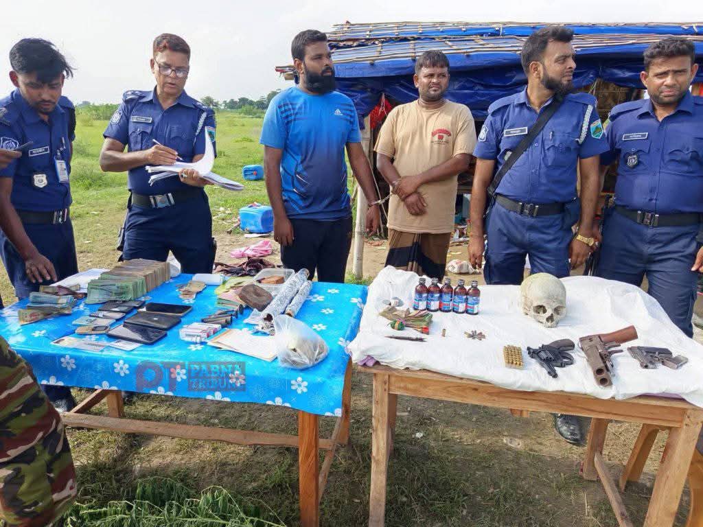 পাবনার ঈশ্বরদীর সাঁড়া ঘাট এলাকায় সেনাবাহিনীর একটি বিশেষ অভিযানে অস্ত্র, গুলি, মাদকদ্রব্য, কঙ্কাল, নগদ প্রায় এক লক্ষ টাকা, মোবাইল ফোনসহ