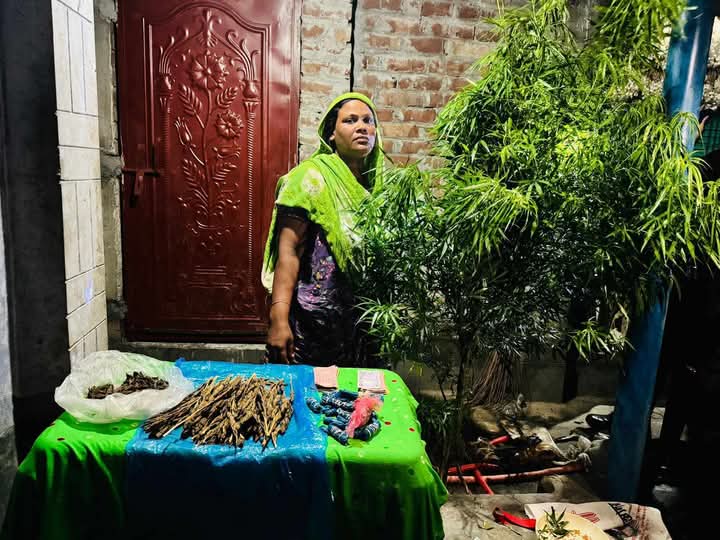 নাটোরের লালপুরে ৫ শ গ্রাম গাঁজা ও তিনটি তাজা বড় গাঁজার গাছ সহ চম্পা বেগম নামের এক নারী মাদক ব্যবসায়ীকে