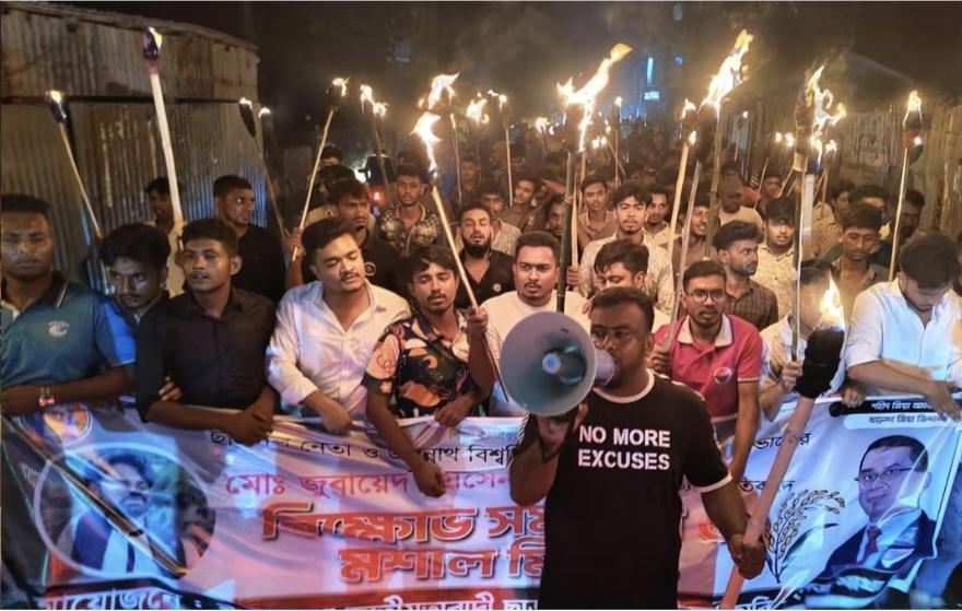 ছাত্রদল নেতা জোবায়েদ হত্যার প্রতিবাদে ঈশ্বরদীতে মশাল মিছিল