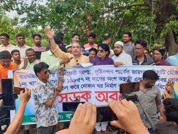 হাটের জায়গা নষ্ট করে খাস জমিতে ঘর নির্মানের প্রতিবাদে চাঁপাইনবাবগঞ্জে সড়ক অবরোধ