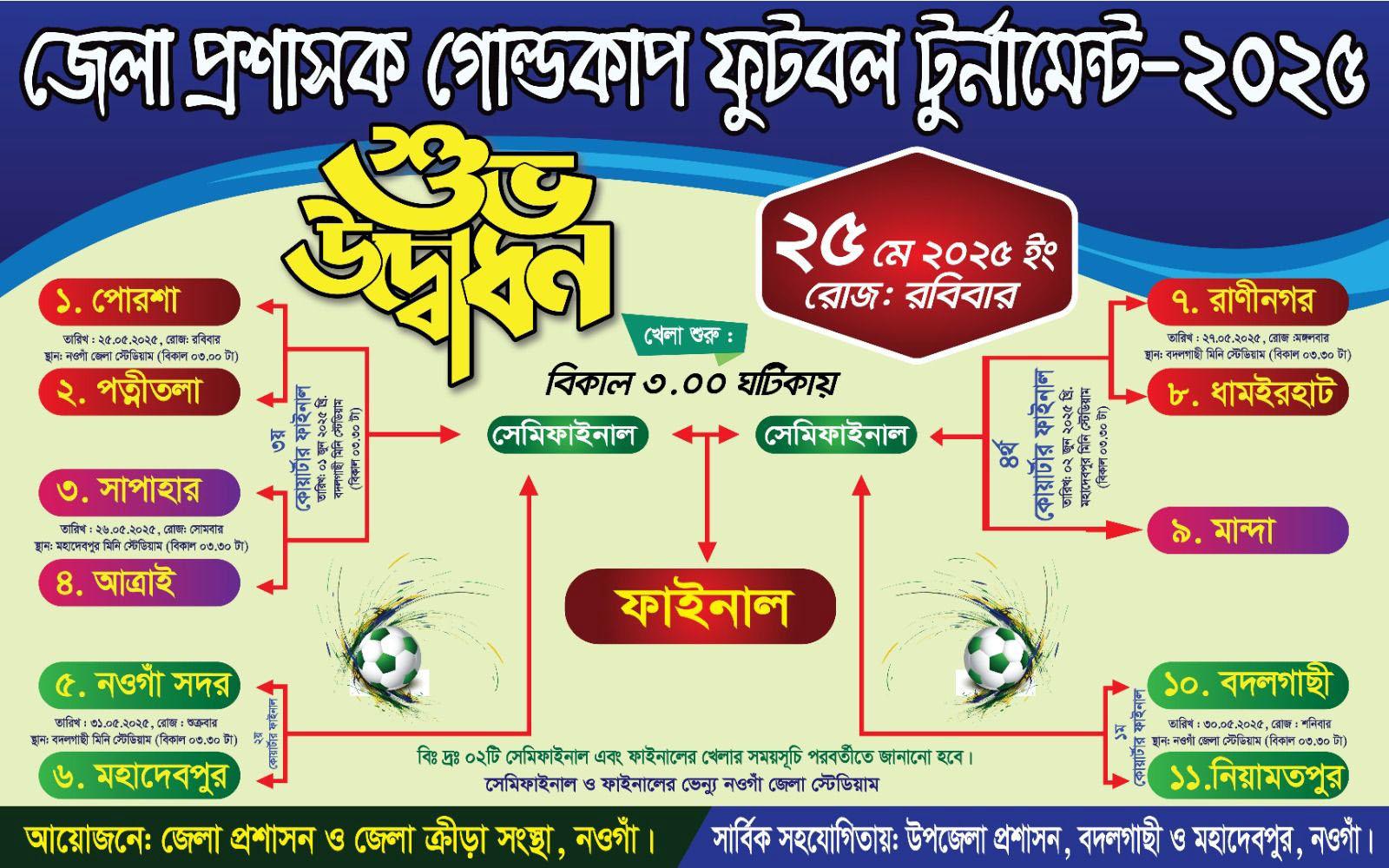 ৩০বছর পর রোববার শুরু হচ্ছে নওগাঁ ডিসি গোল্ডকাপ ফুটবল প্রতিযোগিতা