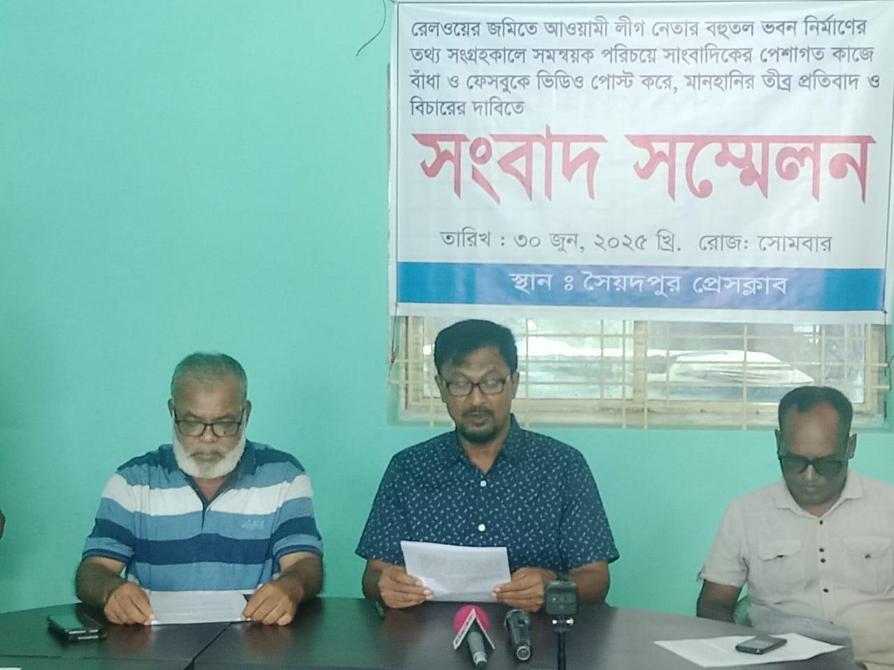নীলফামারীর সৈয়দপুরে রেলওয়ের জমিতে আওয়ামী লীগ নেতার বহুতল ভবন নির্মাণের তথ্য সংগ্রহকালে সমন্বয়ক পরিচয়ে সাংবাদিকের পেশাগত কাজে বাঁধা ও ফেসবুকে