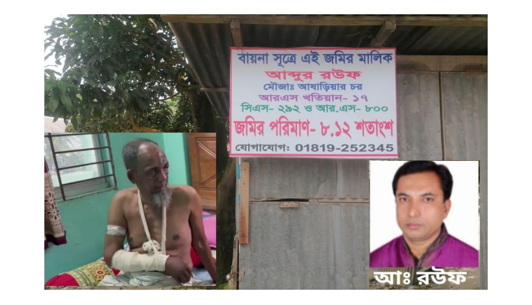 চাঁদাবাজী ও অবৈধ দখলের কারনে অতিষ্ঠসেই বৃদ্ধ রহিমের জমিতে বিএনপি নেতা রবের থাবা, সাইনবোর্ড টানিয়ে জমি দখল । নিজের জমি