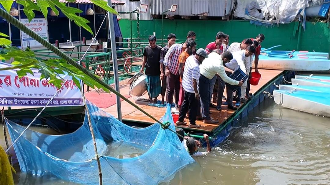 ভোলায় জলাশয় ও পুকুরে মাছের পোনা অবমুক্ত