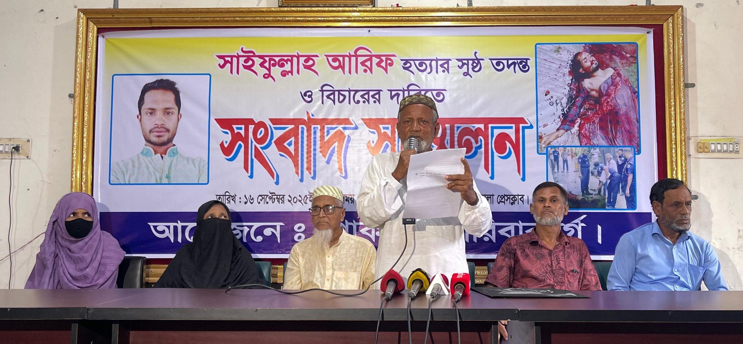 ভোলা সদর উপজেলার ছাত্রলীগের সহ-সভাপতি সাইফুল্লাহ আরিফ হত্যার সুষ্ঠ তদন্ত ও বিচারের দাবিতে সংবাদ সম্মেলন করেছেন নিহতের পরিবার। মঙ্গলবার (১৬