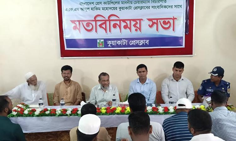 জেলার কুয়াকাটায় প্রেস কাউন্সিলের চেয়ারম্যান বিচারপতি এ.কে.এম আব্দুল হাকিম সাংবাদিকদের সাথে মতবিনিময় সভা করেছেন। বুধবার কুয়াকাটা প্রেসক্লাব মিলনায়তনে প্রেসক্লাবের সভাপতি