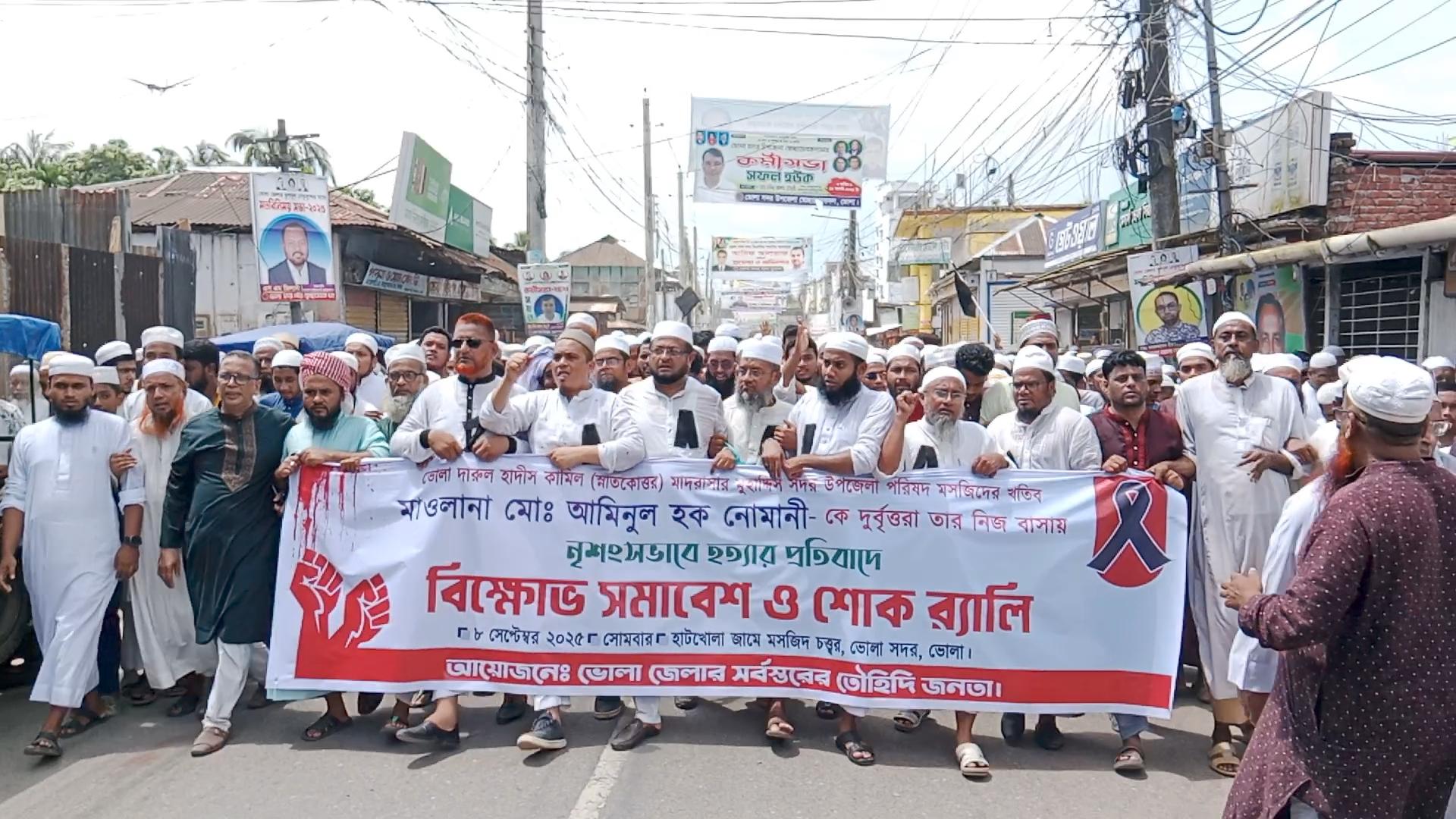 ভোলায় আমিনুল হক নোমানী হত্যার প্রতিবাদে বিক্ষোভ ও শোক র্যালি