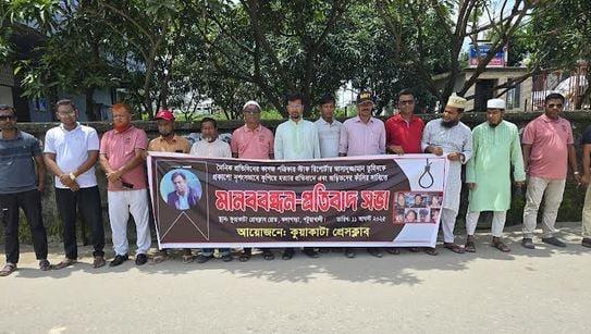 সাংবাদিক তুহিন হত্যার বিচার দাবিতে কুয়াকাটায় মানববন্ধন