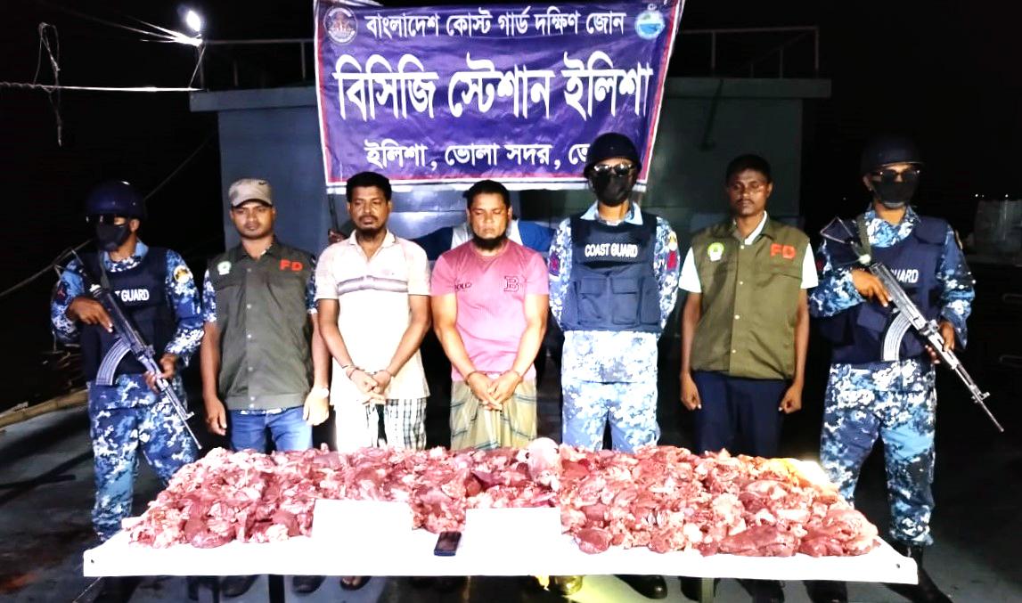 ভোলার ইলিশায় অভিযান চালিয়ে ৪৫ কেজি হরিণের মাংসসহ মো: রাফেজ (৪১) ও মো: মাকসুদুর রহমান (৩৫) নামে দুই পাচারকারীকে আটক