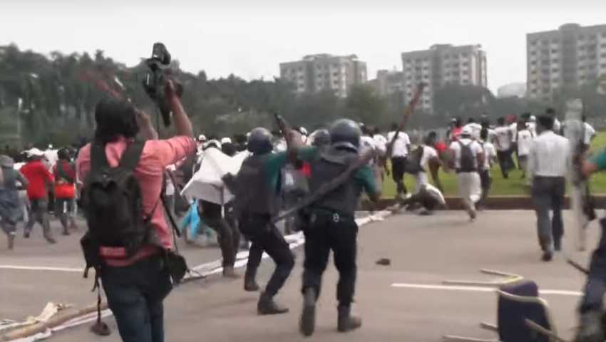 ‘জুলাই যোদ্ধাদের’ সরিয়ে দিল পুলিশ, ইটপাটকেল নিক্ষেপ, ভাঙচুর, বিস্ফোরণ