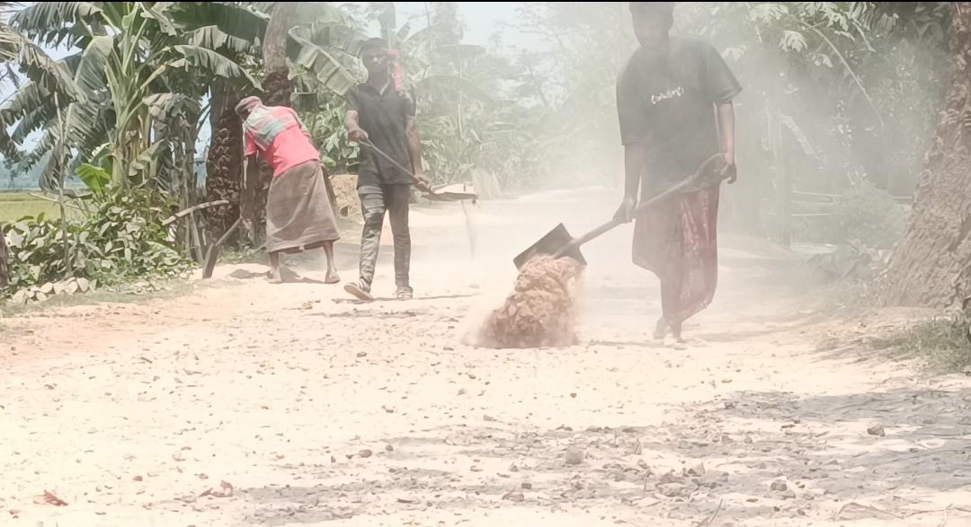নওগাঁর মান্দায় নিম্নমানের ইট ও রাবিশ দিয়ে রাস্তা নির্মাণ