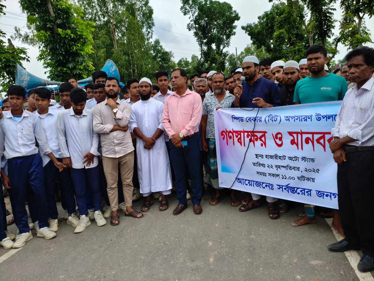 সৈয়দপুরে গতিরোধক (বিট) অপসারনের দাবিতে মানববন্ধন কর্মসূচি পালিত হয়েছে। বৃহস্পতিবার (২২মে) দুপুর ১২ টায় উপজেলার কাশিরাম বেলপুকুর ইউনিয়নের হাজারী হাট