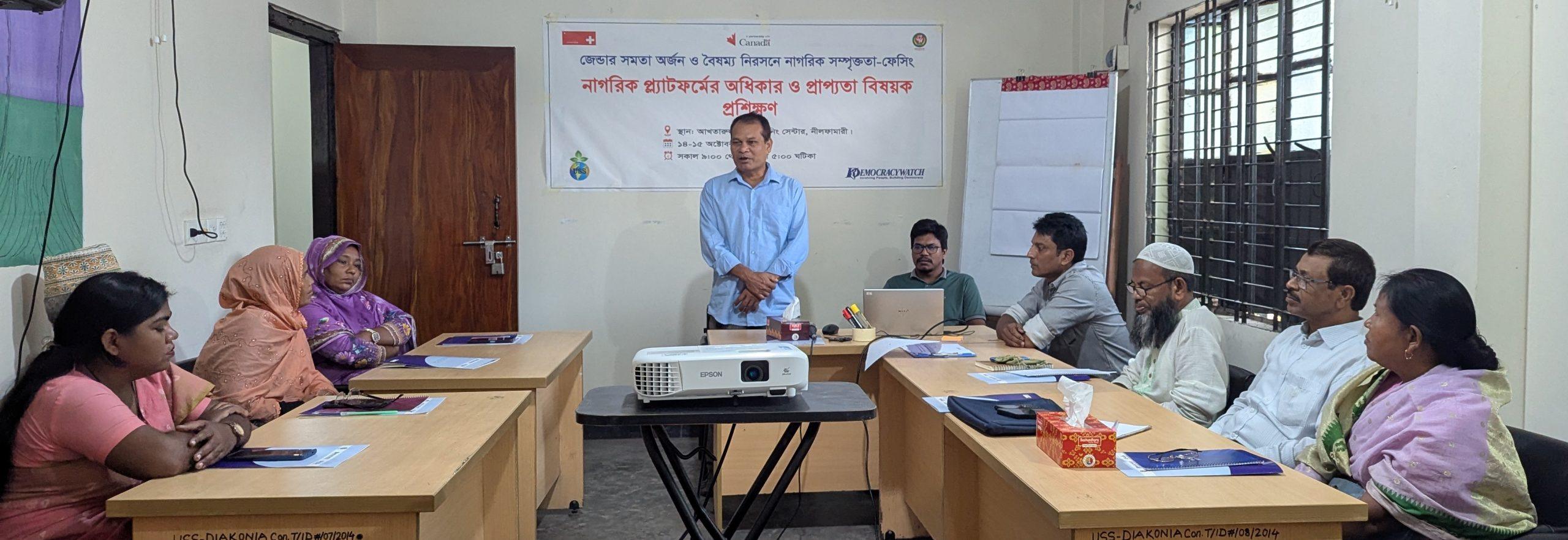 নীলফামারীতে ডেমক্রেসিওয়াচ এর ‘জেন্ডার সমতা অর্জন এবং বৈষম্য নিরসনে নাগরিক সম্পৃক্ততা-ফেসিং’ প্রকল্পের আওতায় নাগরিক প্লাটফর্মের অধিকার ও প্রাপ্যতা বিষয়ক দু’দিন