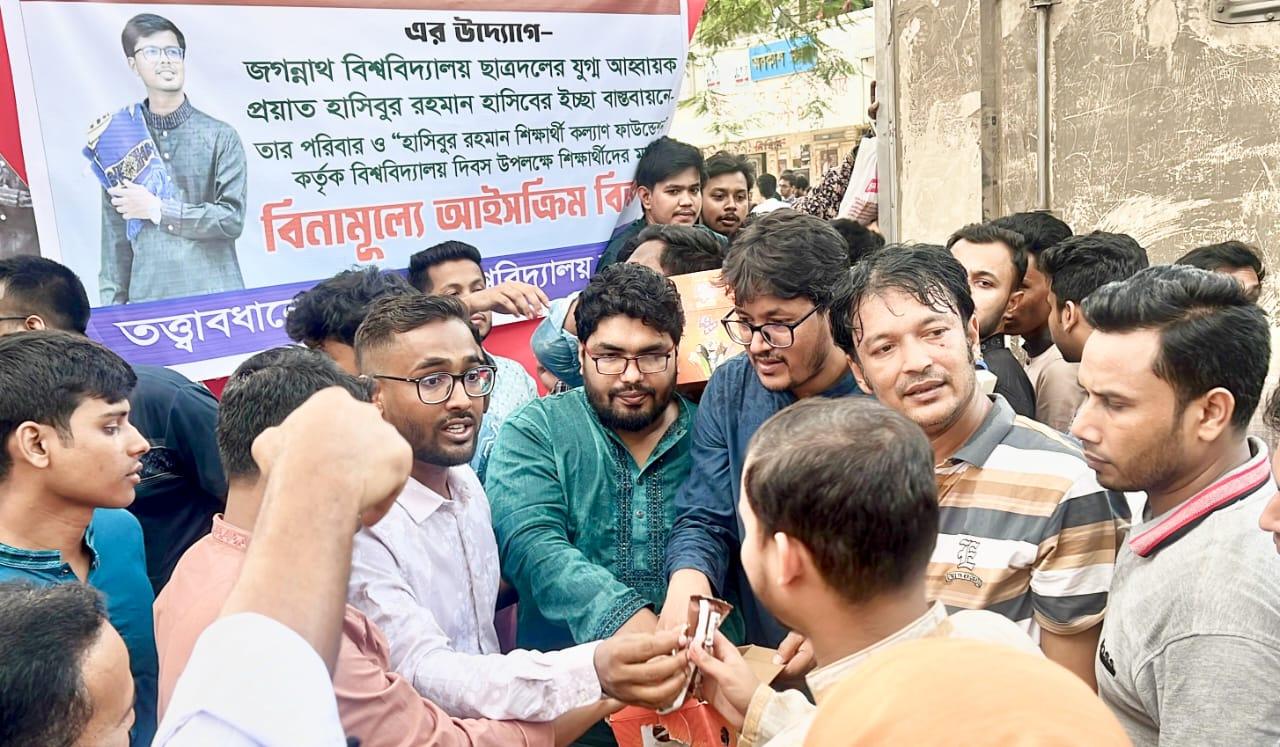 হাসিবের শেষ ইচ্ছা পূরণে জবি ছাত্রদলের আইসক্রিম বিতরণ