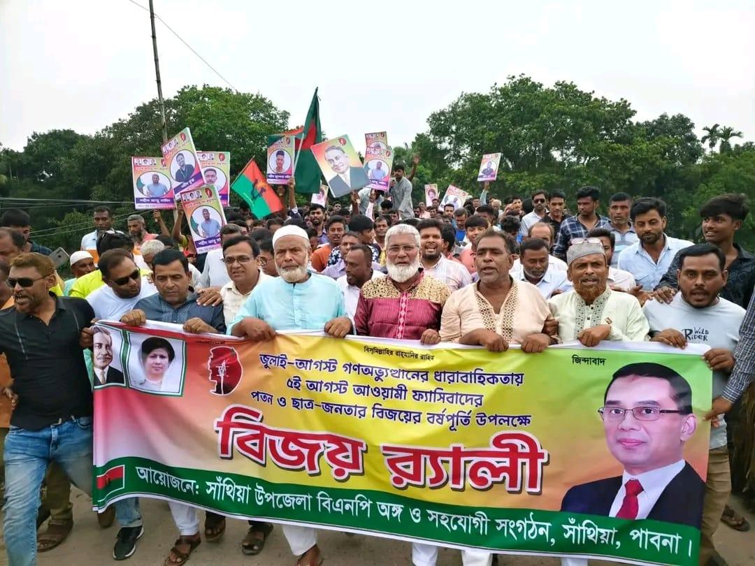 গণঅভ্যুত্থান দিবসে সাঁথিয়ায় বিএনপি’র বিজয় মিছিল