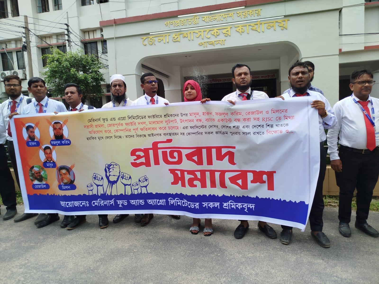 পাবনায় মেরিন ইঞ্জিনিয়ারদের শিল্পপ্রতিষ্ঠান মেরিনার্স গ্রুপের কারখানায় হামলা, মালামাল লুট, কর্মীদের মারধর, জোরপূর্বক বন্ধের বিরুদ্ধে মানববন্ধন, বিক্ষোভ ও প্রতিবাদ সমাবেশ