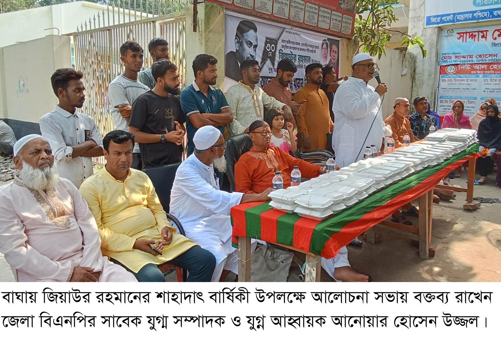 বাঘায় জিয়াউর রহমানের শাহাদাৎ বার্ষিকী উপলক্ষে আলোচনা সভা ও খাবার বিতরণ