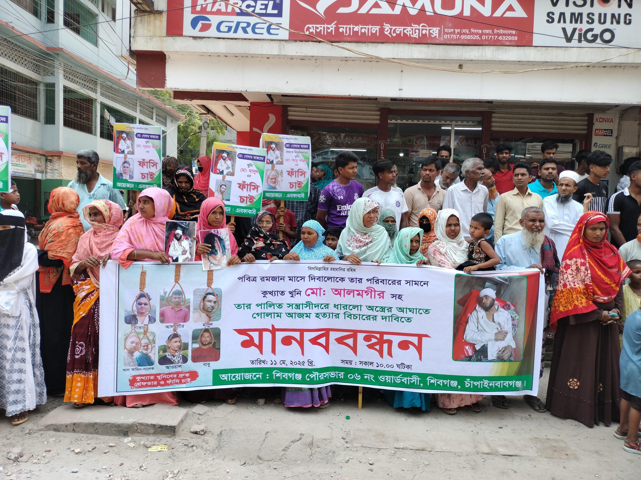 চাঁপাইনবাবগঞ্জের শিবগঞ্জে প্রকাশ্যে খুন গোলাম আজম, বিচারের দাবিতে মানববন্ধন