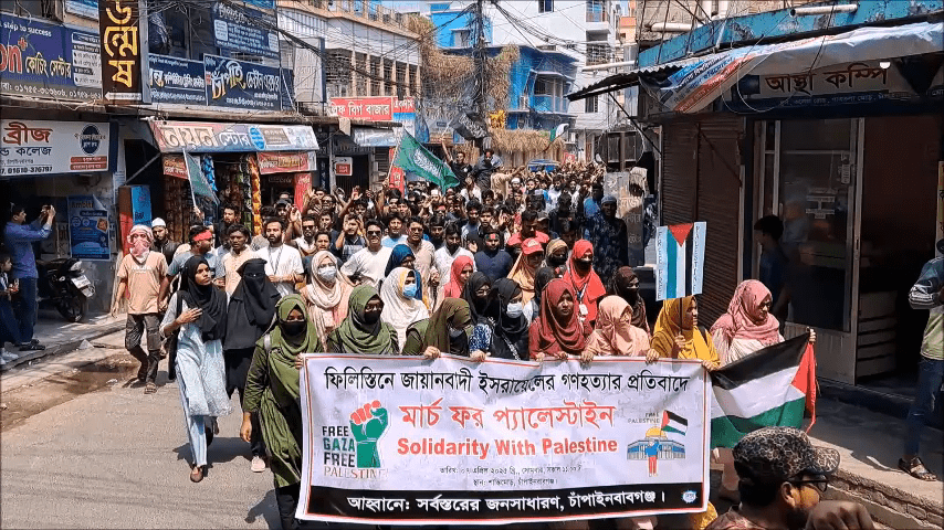ফিলিস্তিনে ইসরাইলি গণহত্যার প্রতিবাদে চাঁপাইনবাবগঞ্জে বিক্ষোভ