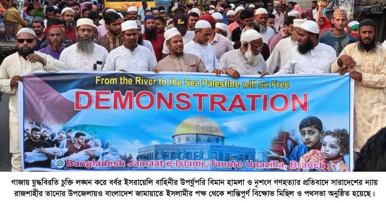 গাজায় নৃশংস গণহত্যার প্রতিবাদে তানোরে বিক্ষোভ মিছিল অনুষ্ঠিত