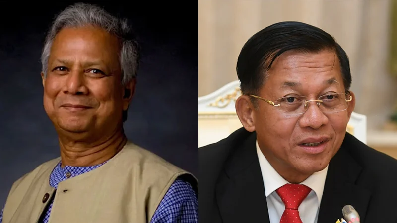 ঢাকা: মিয়ানমার প্রজাতন্ত্রের রাষ্ট্রীয় প্রশাসন কাউন্সিলের চেয়ারম্যান এবং প্রধানমন্ত্রী সিনিয়র জেনারেল মিন অং হ্লাইং প্রধান উপদেষ্টা অধ্যাপক মুহাম্মদ ইউনূসের সঙ্গে