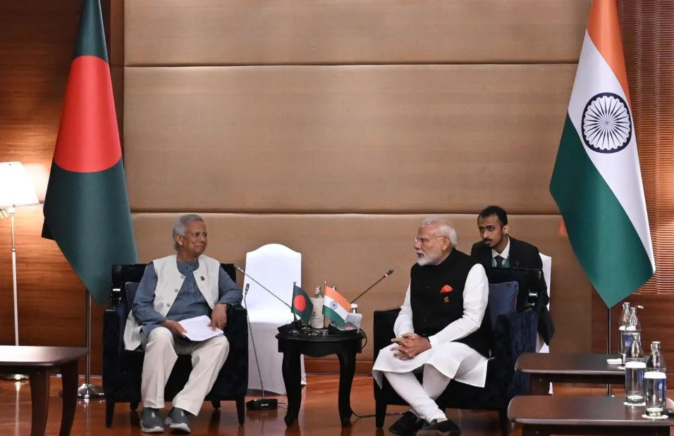 ব্যাংককে বিমসটেক সম্মেলনের ফাঁকে বাংলাদেশের প্রধান উপদেষ্টা অধ্যাপক ড. মুহাম্মদ ইউনূস ও ভারতের প্রধানমন্ত্রী নরেন্দ্র মোদি আধা ঘন্টারও বেশি সময়
