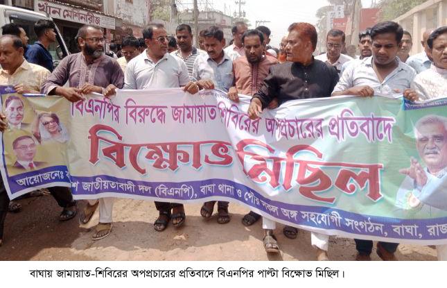 বাঘায় জামায়াত-শিবিরের অপপ্রচারের প্রতিবাদে বিএনপির পাল্টা বিক্ষোভ মিছিল