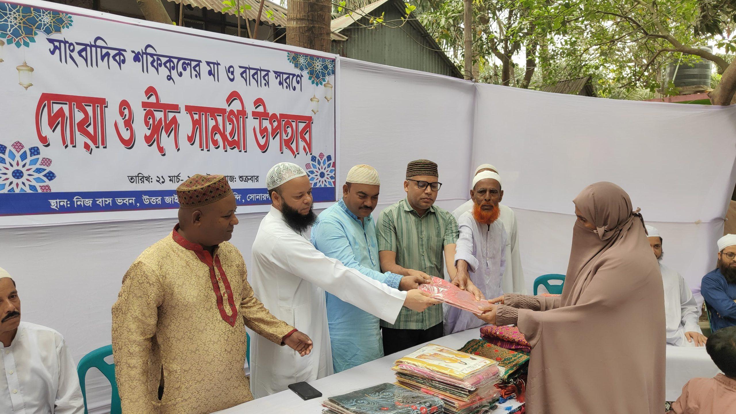 সোনারগাঁওয়ে সাংবাদিক শফিকুলের মা-বাবার জন্য দোয়া ও ঈদ সামগ্রী বিতরণ