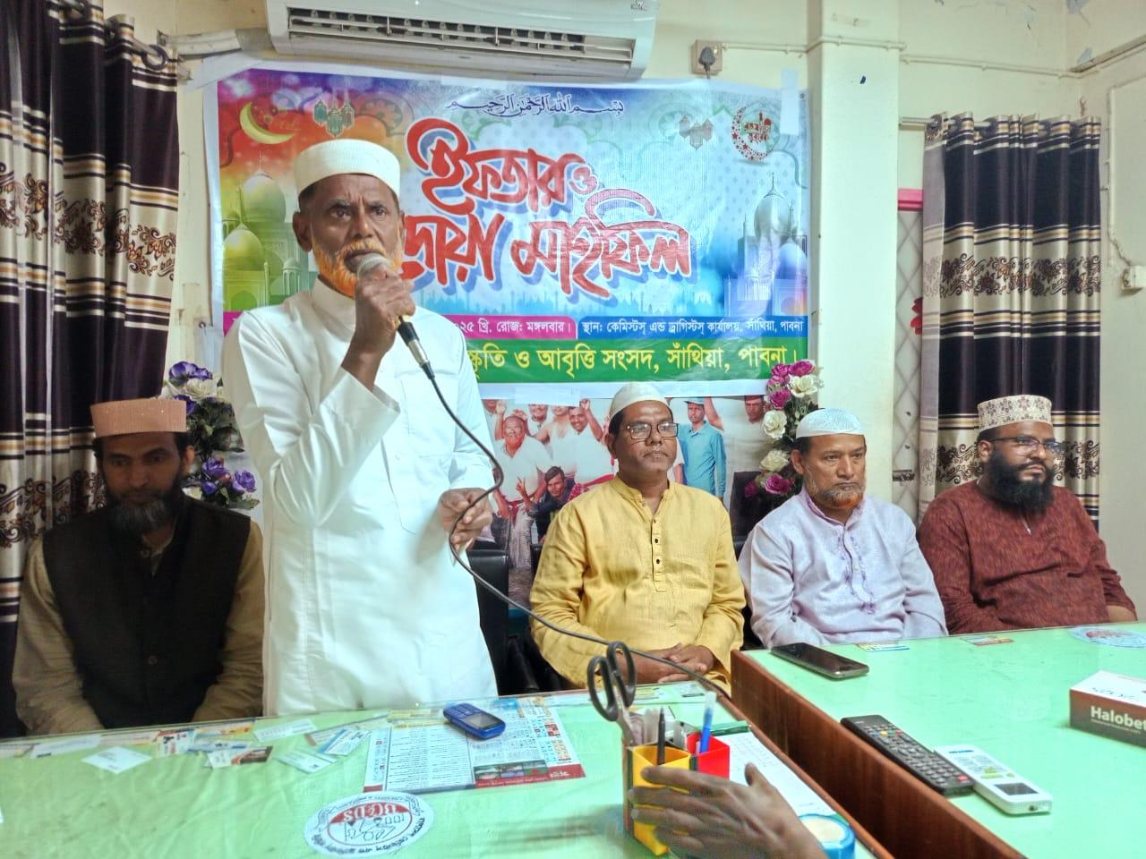 সাঁথিয়া সাহিত্য-সংস্কৃতি ও আবৃতি সংসদের উদ্যোগে ইফতার ও দোয়া মাহফিল অনুষ্ঠিত হয়েছে। পাবনার সাঁথিয়ায় কেমিষ্ট এন্ড ড্রাগিস্টস্ সমিতির কার্যালয়ে সাঁথিয়া