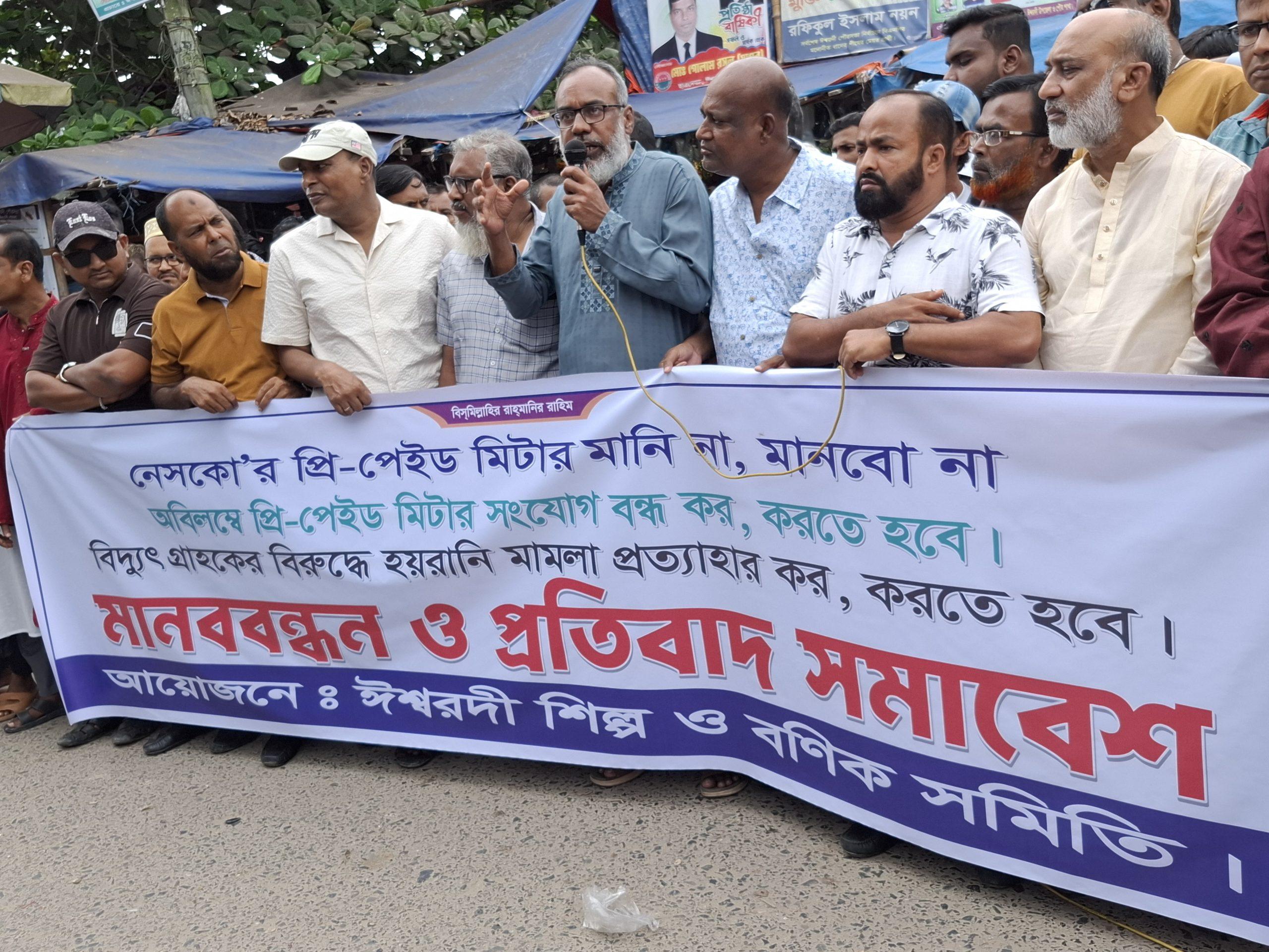 পাবনার ঈশ্বরদীতে প্রিপেইড মিটার প্রতিস্থাপন বিরোধী আন্দোলনকারী ২০১ জন বিদ্যুৎ গ্রাহকের বিরুদ্ধে নেসকোর নির্বাহী প্রকৌশলীর মামলার প্রতিবাদে ও মামলা প্রত্যাহারের