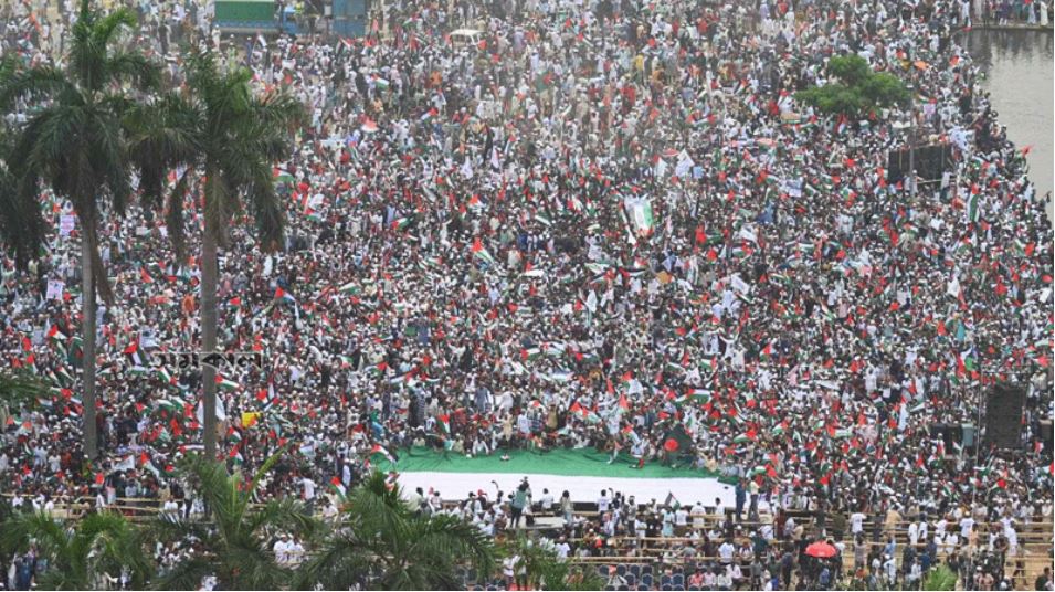 ঢাকা : ফিলিস্তিনিদের প্রতি সংহতি জানিয়ে আয়োজিত ‘মার্চ ফর গাজা’ কর্মসূচিতে অংশ নিতে লাখো মানুষের ঢল নেমেছে রাজধানীর সোহরাওয়ার্দী উদ্যানে।