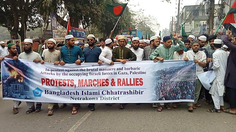 ফিলিস্তিনে বর্বর হামলার প্রতিবাদে দেশজুড়ে বিক্ষোভ